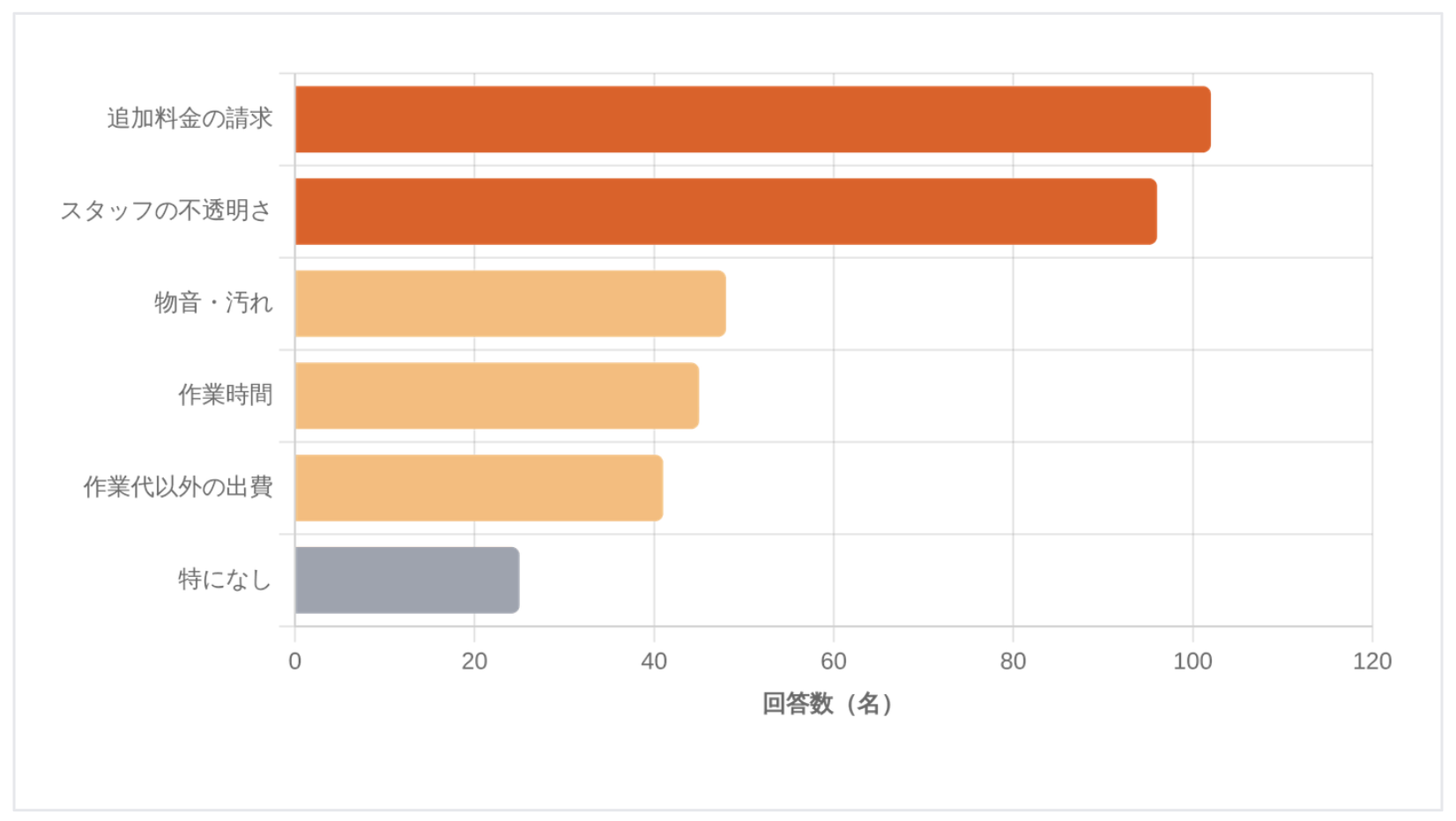 「料金の不透明さ」と「訪問スタッフの不安」という2大要素が顕著です。ここを解消できるかが選定の分かれ目になります。